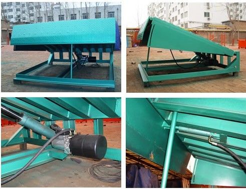 先把货车的后门打开,固定在车厢的两侧,然后把货车倒车到货台跟前直到与固定液压登车桥两边的防撞胶块接触,然后把货车制动住。打开电控箱上面的电源开关,启动上升按钮,当板面升到最大高度的时候,搭接板会自动伸直,并与面板平行,这时,松开上升按钮,面板就会自动下降,指直到与车厢衔接,确认没问题就可以开始作业了。等待作业完毕以后,按上升按钮车辆开走,松开按钮面板会自动下降到原始的状态,并与货台面平行。